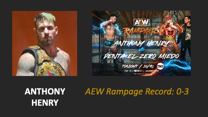 | AEW Rampage #128 – Airdate: 2024 January 19. Location: North Charleston Coliseum in North Charleston, South Carolina, USA. | Penta El Zero Miedo (w/Alex Abrahantes) defeats Anthony Henry (3:51) |