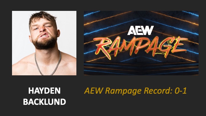 | AEW Rampage #103 – Airdate: 2023 July 28. Location: MVP Arena in Albany, New York, USA. | The Kingdom (Matt Taven & Mike Bennett) defeat Hayden Backlund & Myung-Jae Lee (0:43) |