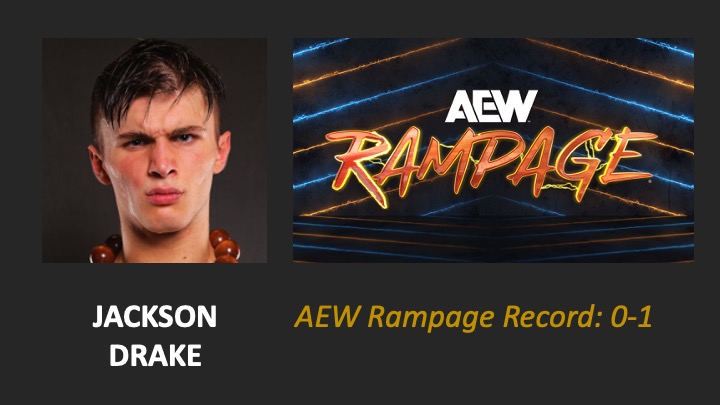 | AEW Rampage #156 – Airdate: 2024 August 2. Location: Bon Secours Wellness Arena in Greenville, South Carolina, USA. | Bryan Keith (w/Big Bill & Chris Jericho) defeats Jackson Drake (3:13) |