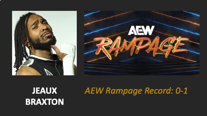 | AEW Rampage #94 – Airdate: 2023 May 26. Location: MGM Grand Garden Arena in Las Vegas, Nevada, USA. | Ethan Page & The Gunns (Austin Gunn & Colten Gunn) defeat Lights Camera Faction (FrescoMatic, Jeaux Braxton & Watson) (2:38) |