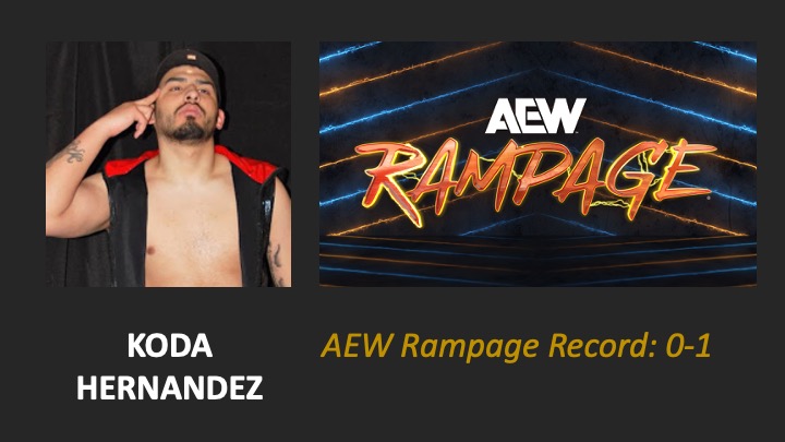 AEW Rampage #98 – Airdate: 2023 June 23. Location: Wintrust Arena in Chicago, Illinois, USA.Billy Gunn & The Acclaimed (Anthony Bowens & Max Caster) defeat Axel Rico, Darius Latrell & Koda Hernandez (0:41)