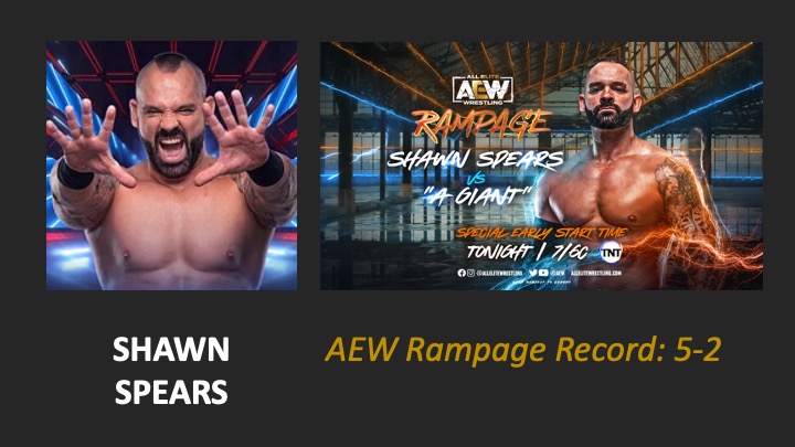| AEW Rampage #40 – Airdate: 2022 May 13. Location: UBS Arena in Elmont, New York, USA. | Shawn Spears defeats Bear Boulder (2:03) |